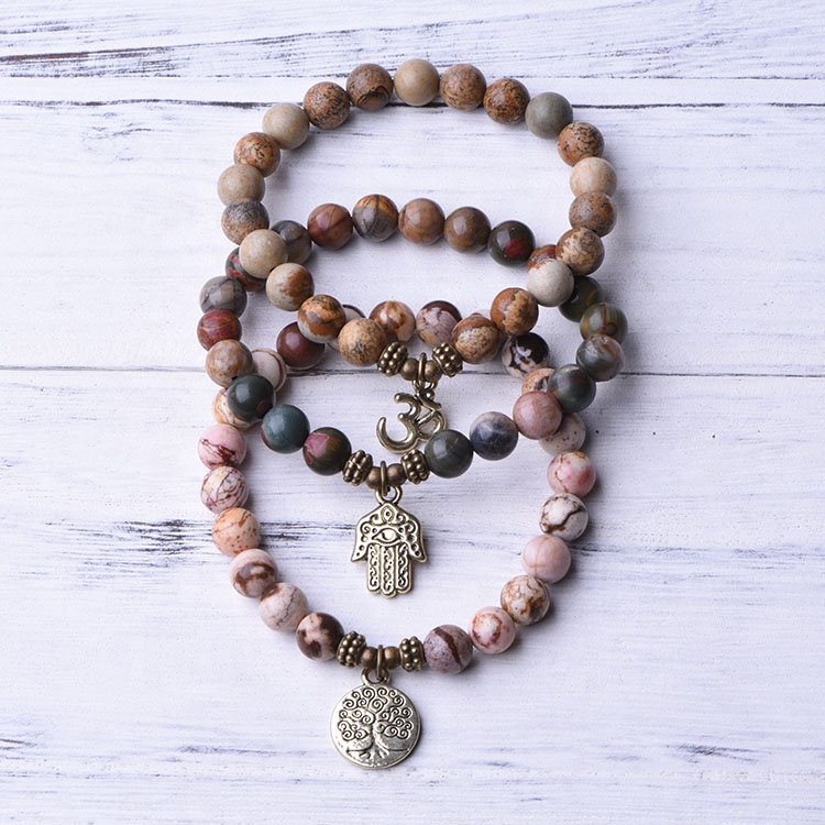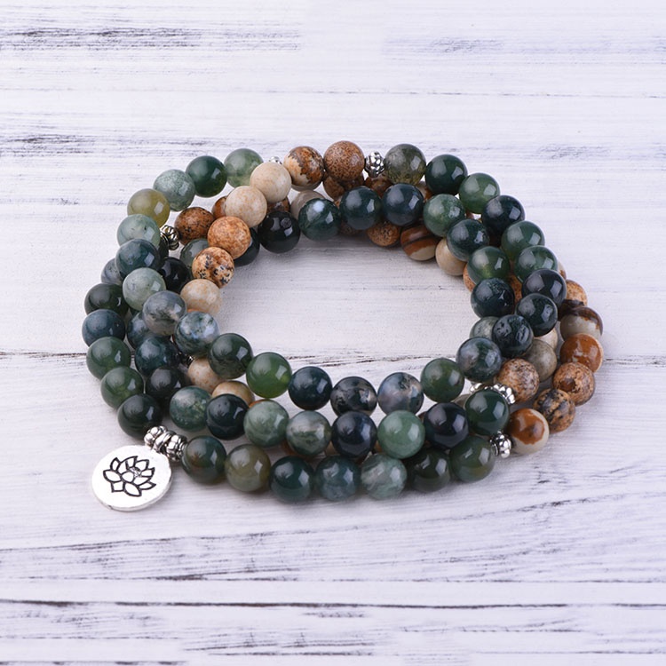 108 mala cầu nguyện Hạt Vòng Cổ 8mm đá tự nhiên Thiền Yoga trang sức handmade mala tua Mặt dây chuyền cho kinh Mân Côi